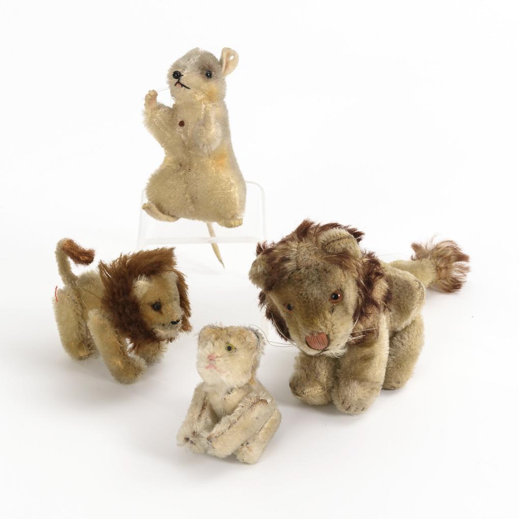 2 lions, 1 cat and 1 mouse. Slight signs of age, 1 lion with bald spots.
