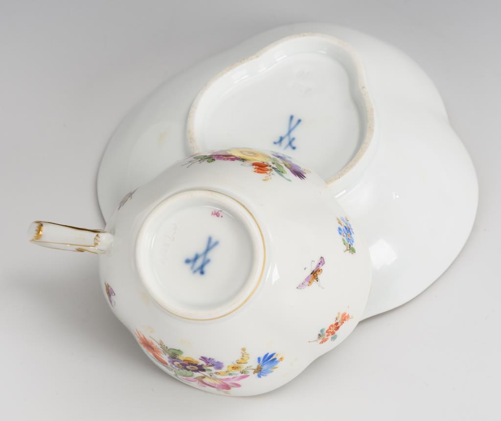 Vierpasstasse mit Blumen- und Insektenmalerei