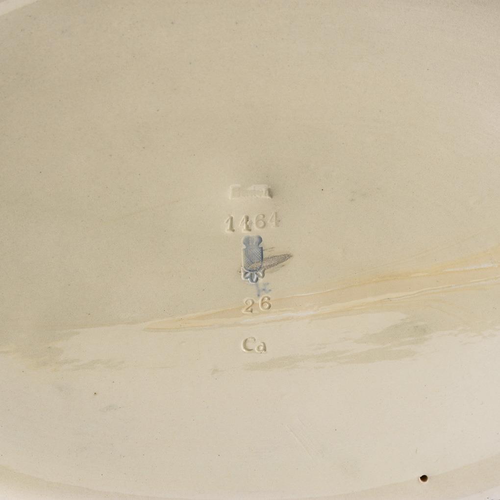 Stoneware, colourfully decorated. H 22.5 cm, l 38 cm.