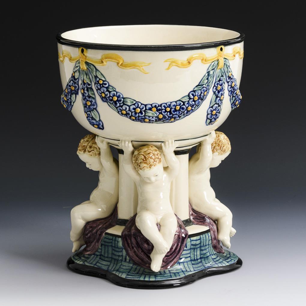 Art Nouveau Cup with 4 Cherubs | see addendum. Karlsruher Majolica.