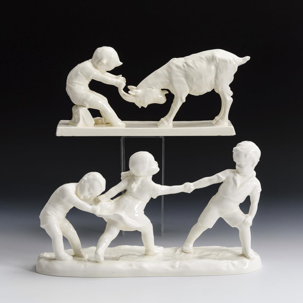 2 Children's Sculptures: Child with Billy Goat and Summer Children (The Round Dance). Max Roesler.