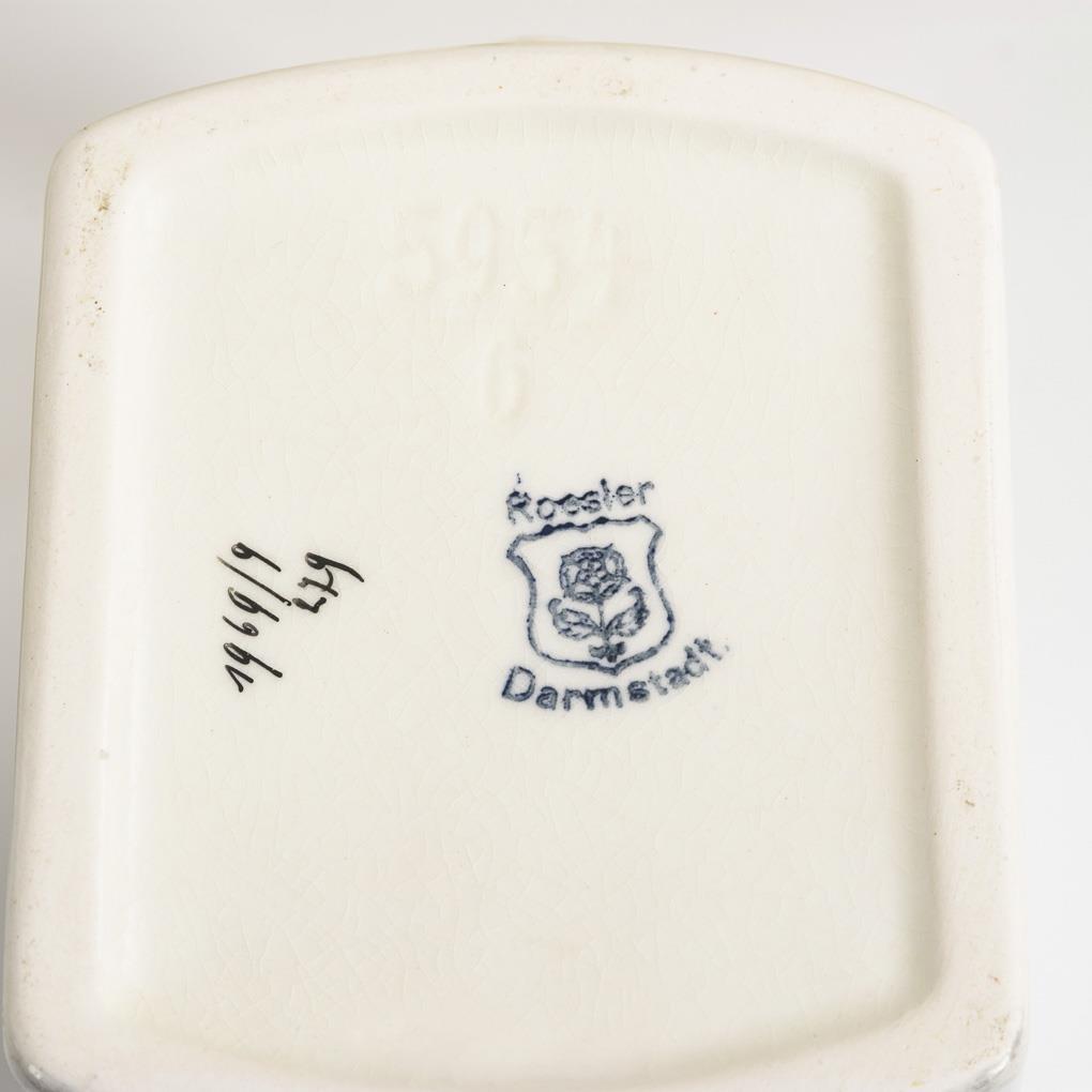 Stoneware, coloured printed decoration, partly gold rim. H 7.5 to 22 cm.