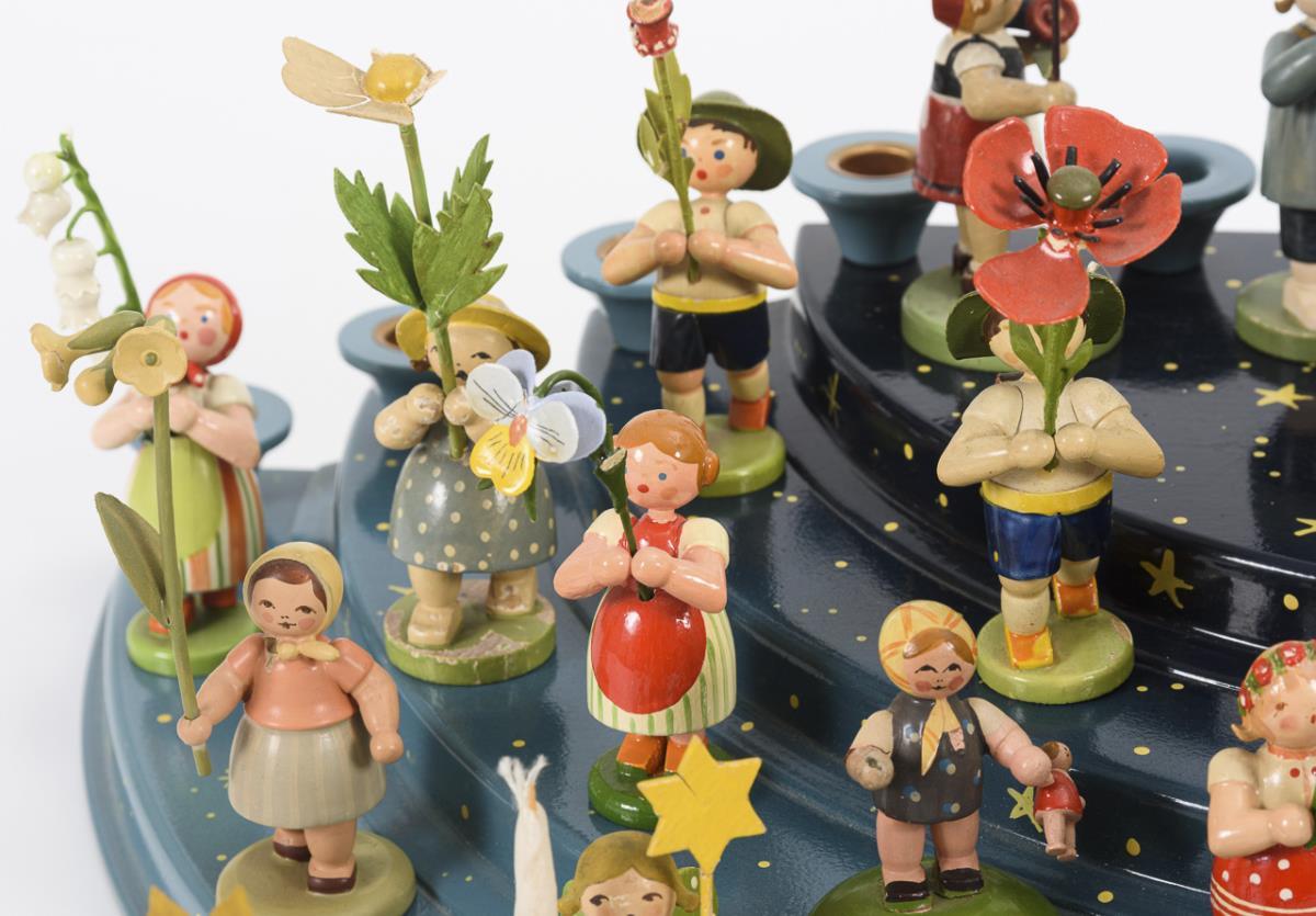 Mainly flower children, including some other figurines. Plus semi-circular angel staircase with 12 candle grommets (10 x 57.5 x 29 cm). Partly small defects.