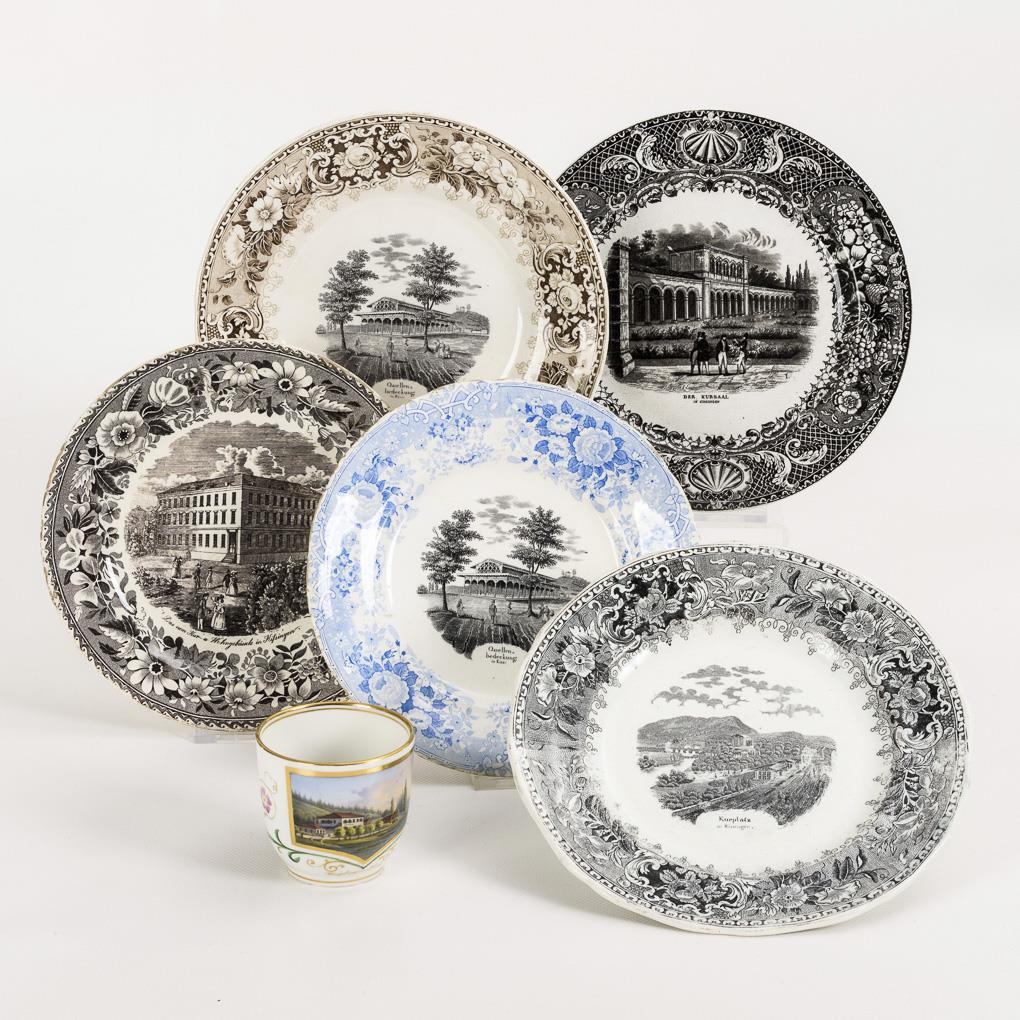 5 plates and 1 view cup with motifs of Bad Kissingen.