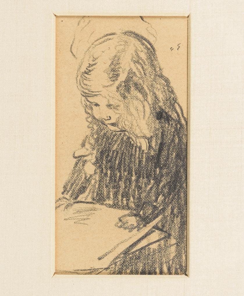 Portrait of a Gentleman, ink drawing, monogrammed, image: 8.2 x 5 cm, framed & behind glass: 21 x 17cm, upper right with small tear | Portrait of a Girl Reading, charcoal drawing, monogrammed, image: 12.8 x 6.7 cm, framed & behind glass: 15.3 x 19.2 cm.