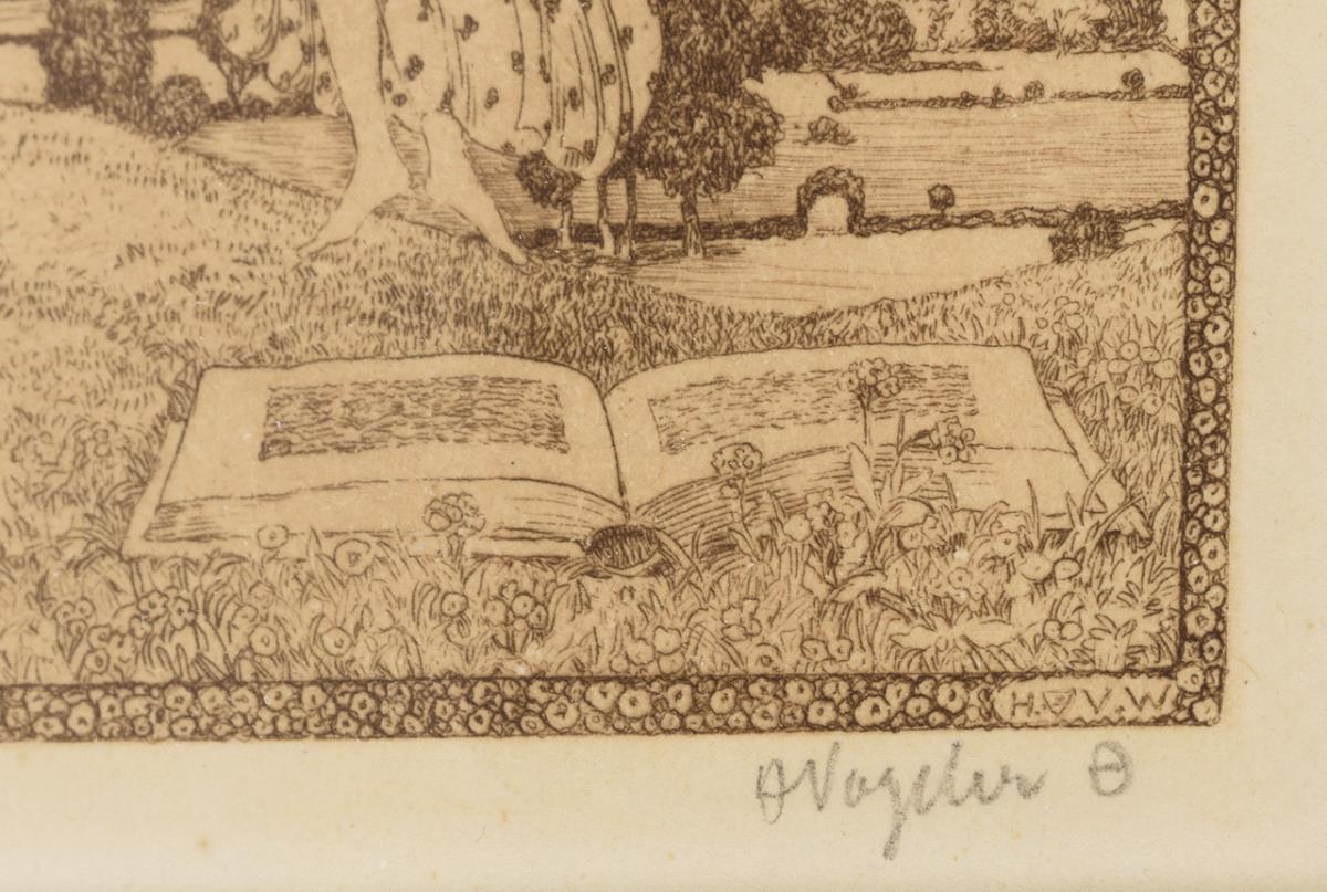 German painter, graphic artist, architect, designer, pedagogue, writer and socialist; belonged to the first generation of the artists' colony Worpswede: "What distinguishes Heinrich Vogeler among the other artists of Art Nouveau and Symbolism is the light-hearted fairy-tale-like quality of his picture world with its great fabulous art. Such fairy-tale pictures have in common the emphasis on a world of sensation in which mysterious processes take place." (Citation: Hans H. Hofstätter in: Symbolism and Art Nouveau in Painting and Graphic Art by Heinrich Vogeler, www.heinrich-vogeler.de).