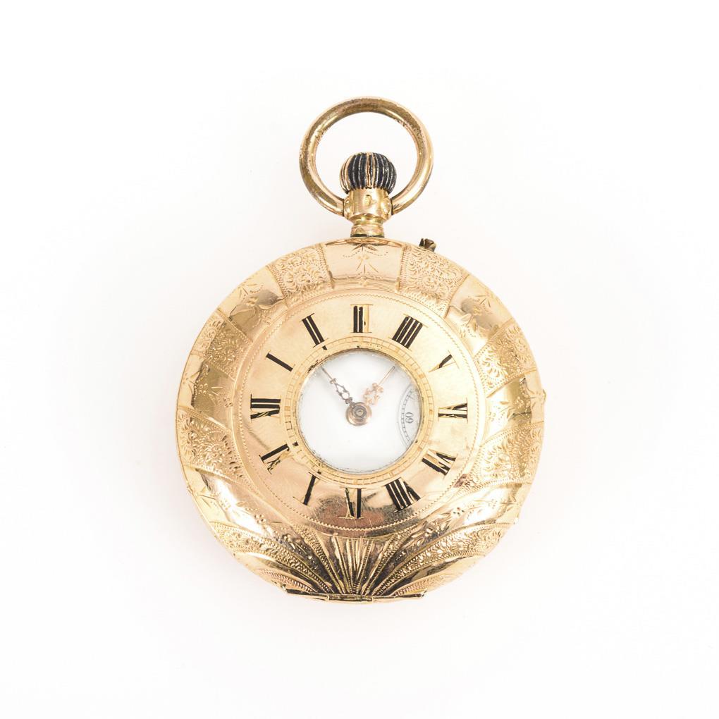 18 k hallmarked, Helvetia hallmark, gold dust cover, marked "Dubois & C.". Ø 4 cm. 47 g.
