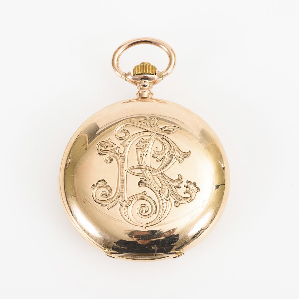 Smooth Savonnette case with ligatured monogram engraving "JR". Small second hairline cracked.