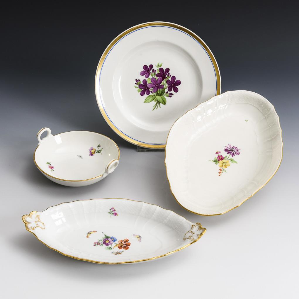 2 oval bowls, 1 handled bowl and 1 plate. KPM Berlin.