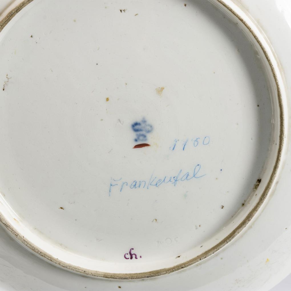 Polychrome painted, capuchin brown rim. Ø 21 cm.