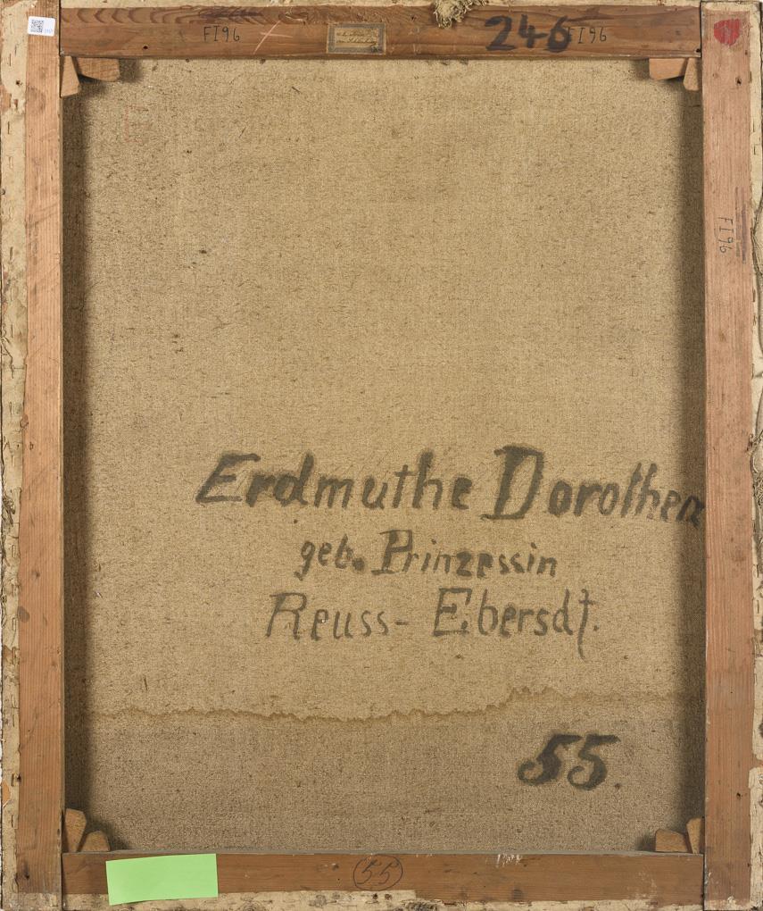 Oil/canvas. Unsigned, titled on the verso as "Erdmuthe Dorothea née Princess Reuss-Ebersdf.". 1st half 18th c.