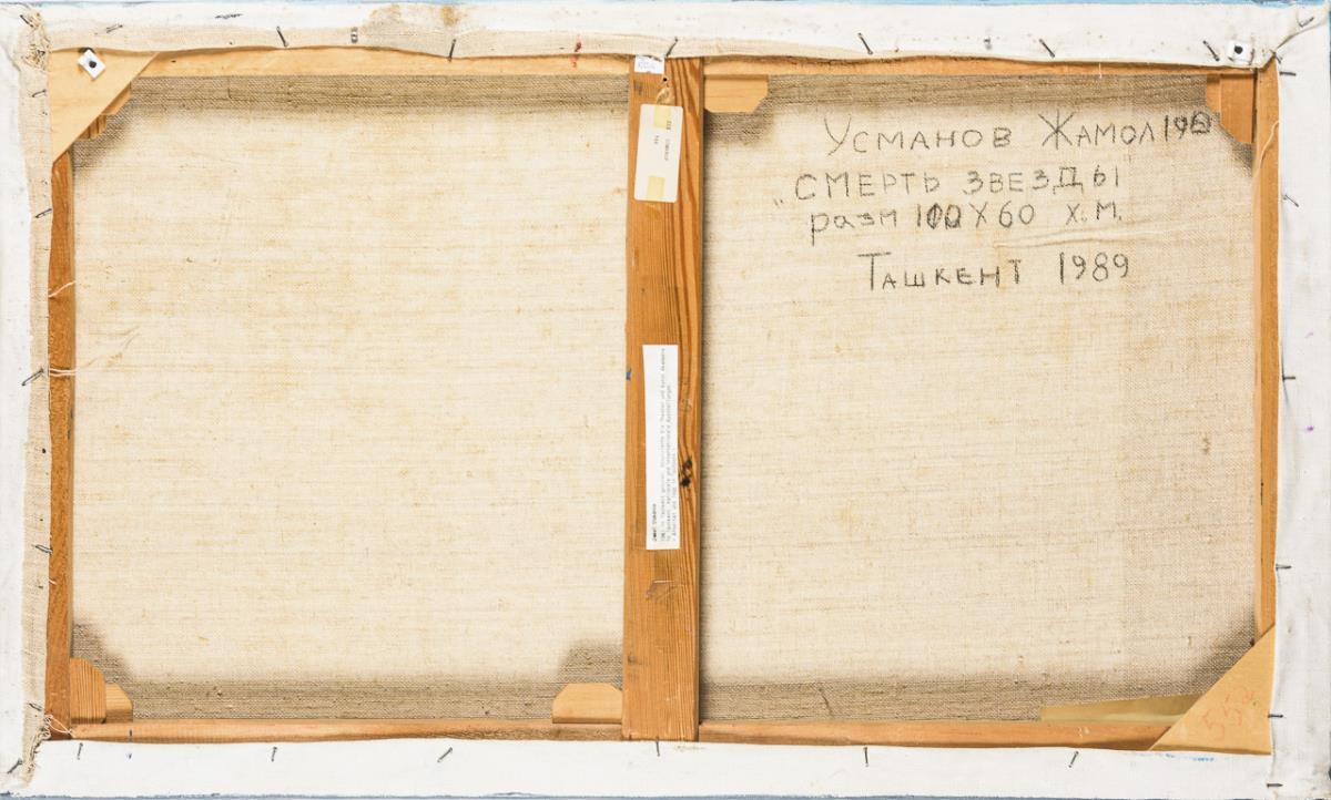 Oil/canvas. Unsigned, inscribed/titled in Cyrillic on verso with addition Tashkent. Dated: 1989.