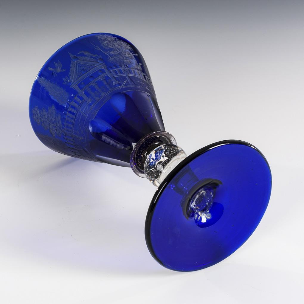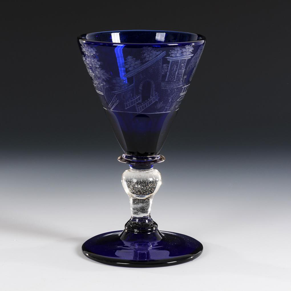 Conical dome with an engraved architectural landscape, baluster shaft, round foot, demolition.