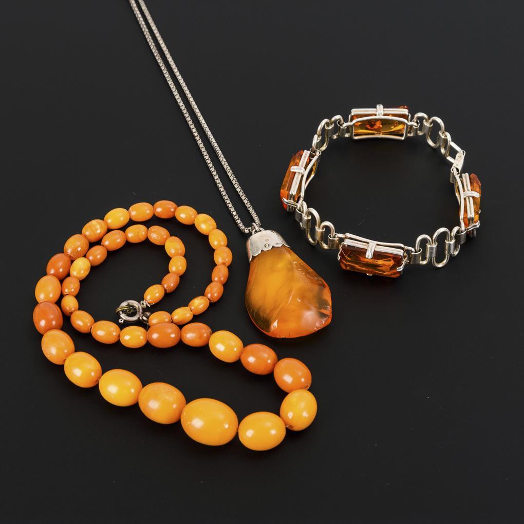 3 pieces of jewelry with amber.