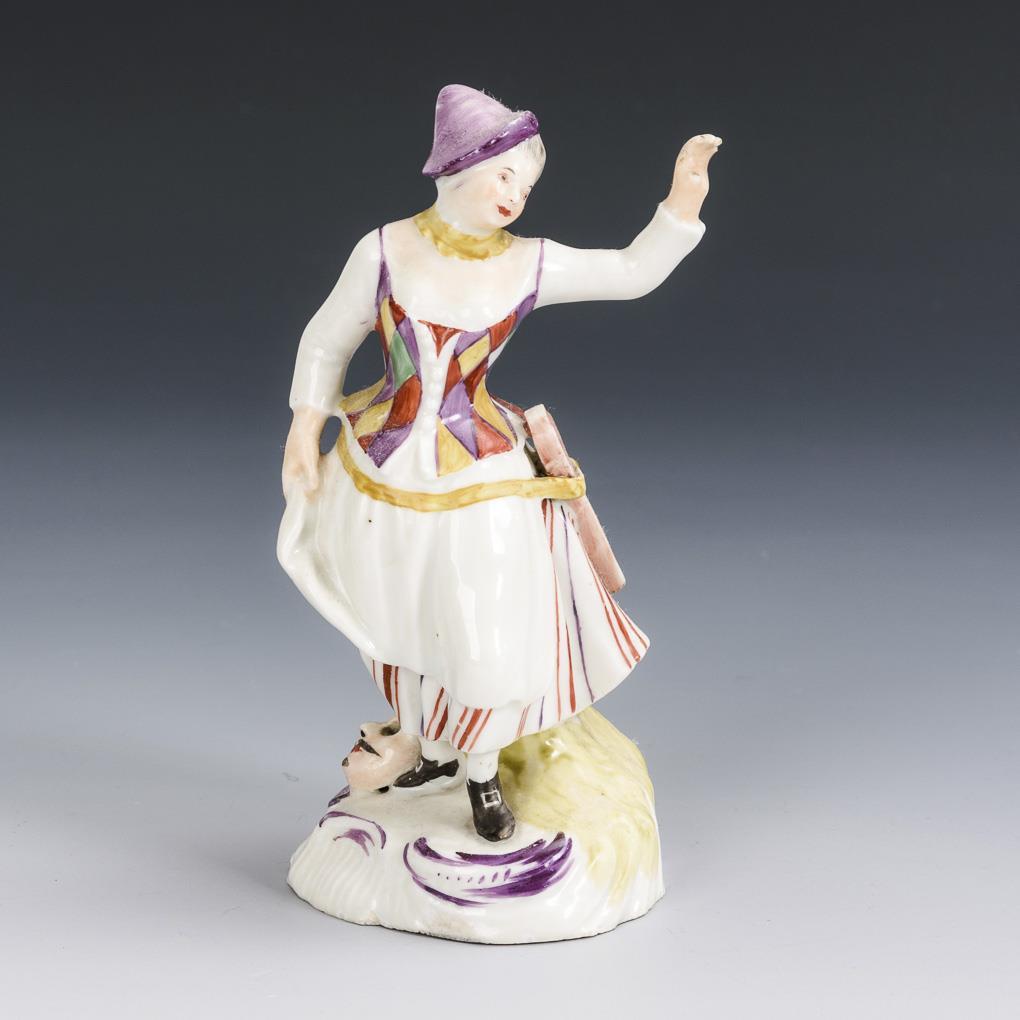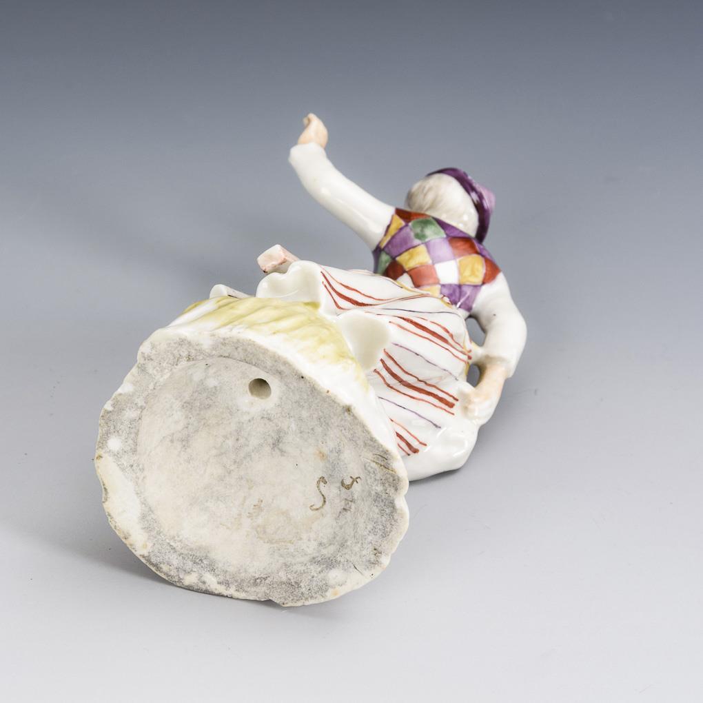 Dancing colombine with clapper. Base rim and left hand bumped.