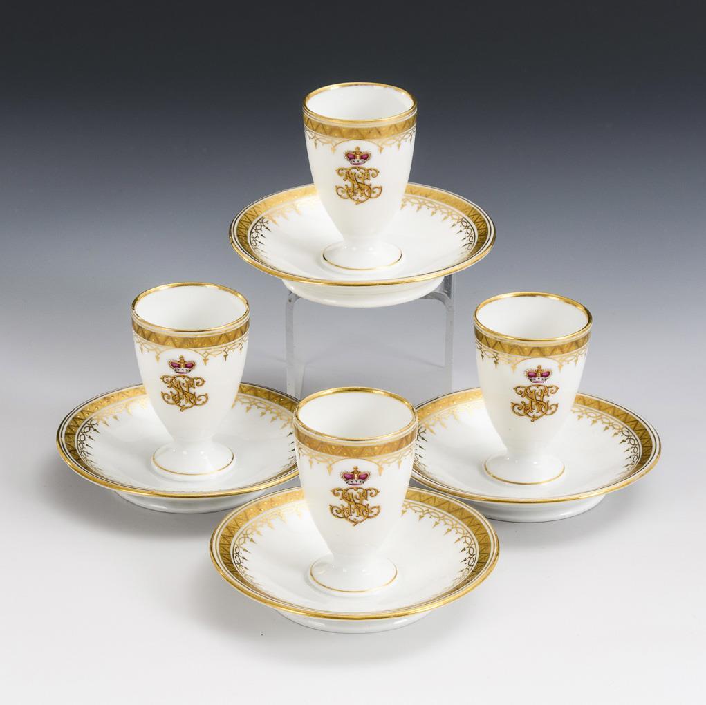 4 rare egg cups for the Habsburg court in Vienna. Fischer & Mieg.