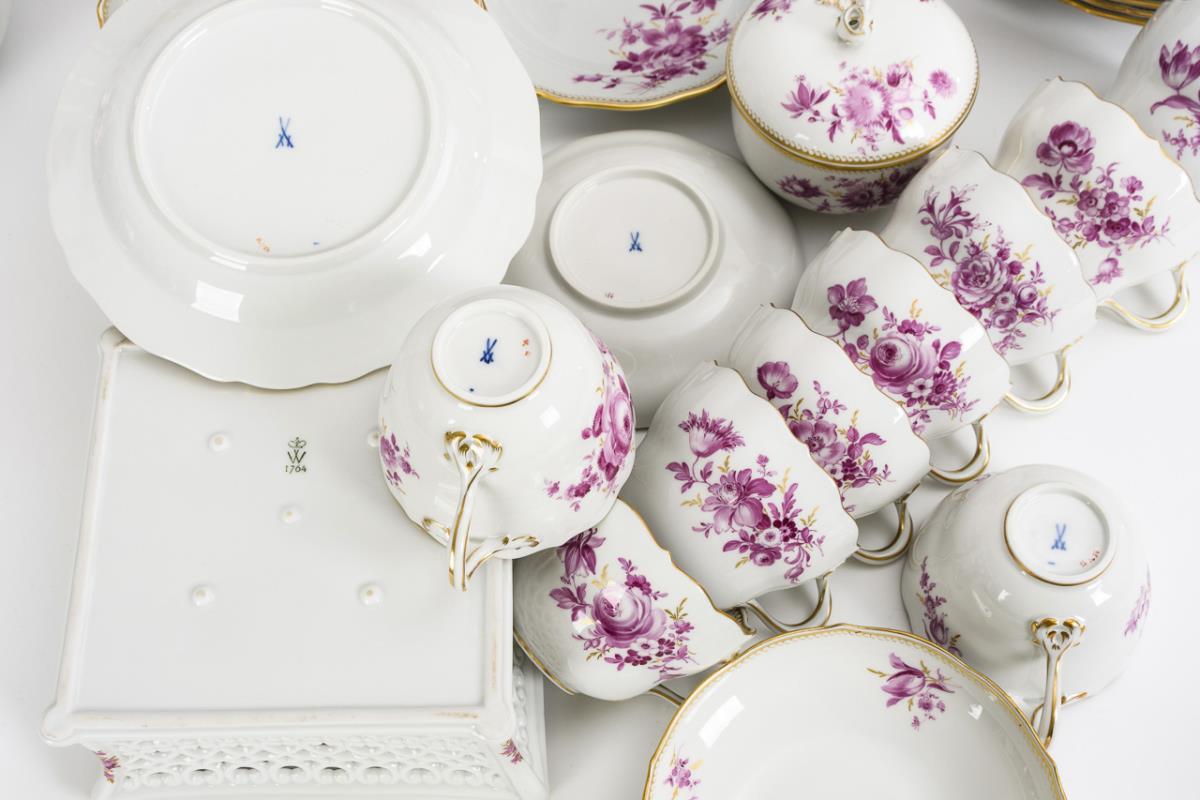 Coffee service with purple painting. Meissen.