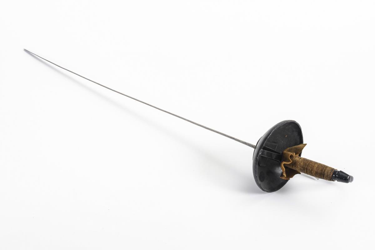 One blade marked with beehive and "7" and broken tip. Other with black set handle guard and fist guard. Both with rope wrap. Signs of age and use.