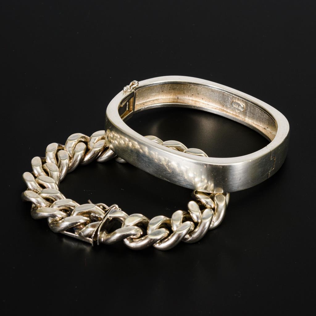 835/925 Silber.Armband 19 x 1,3 cm, Armreif Ø 6 cm, B 1,3 cm.Armband 95,9 g, Armreif 53,4 g.