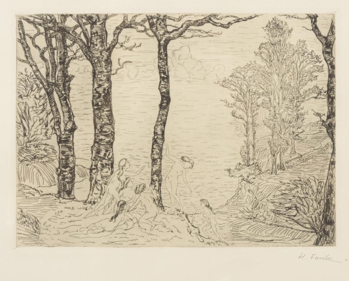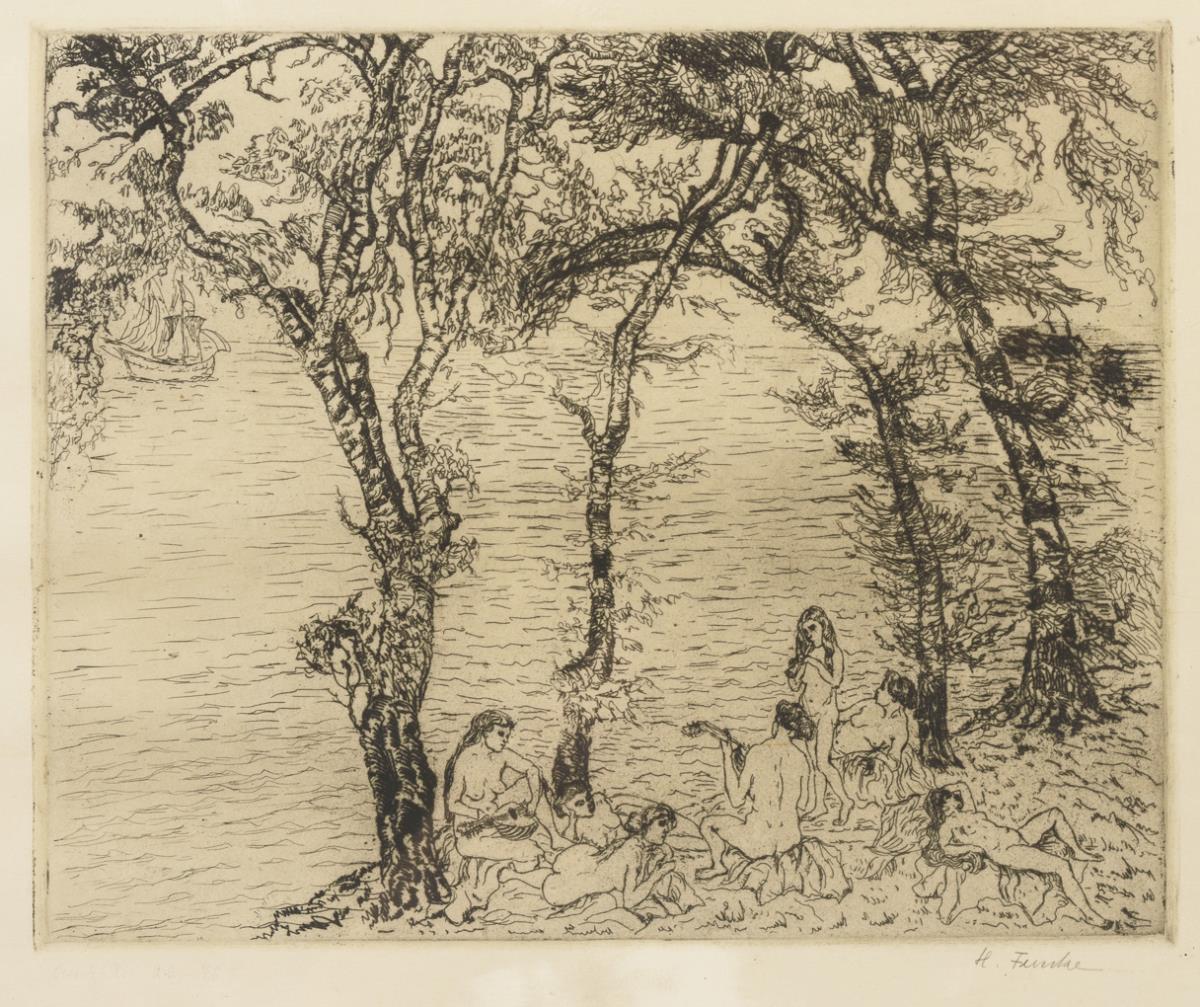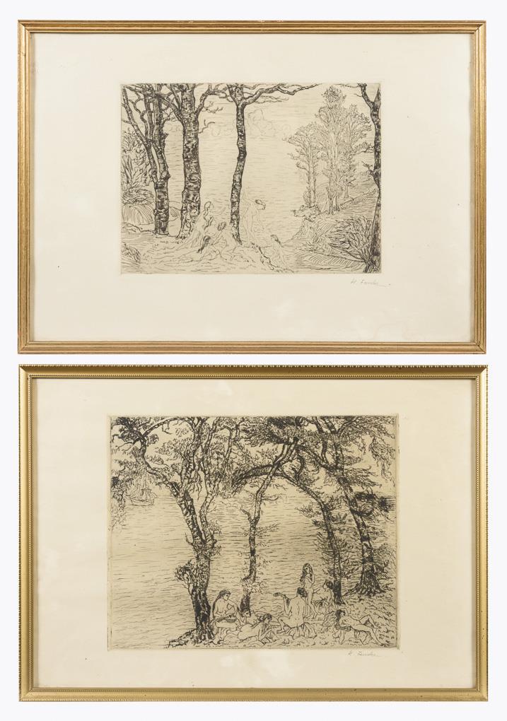 "Under Trees", plate: 23.3, x 29 cm, [1916], "print no. 20 - 46" | Unknown title, plate: 19 x 25.8 cm, "print no. 32 - 40", lower margin with water stains.