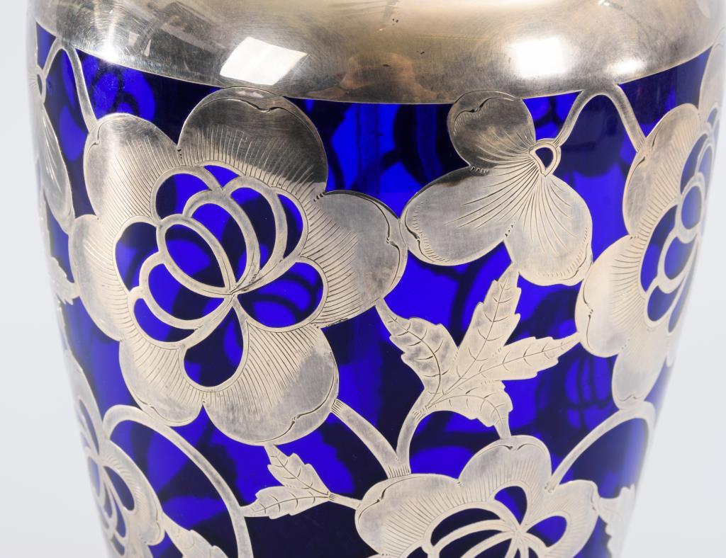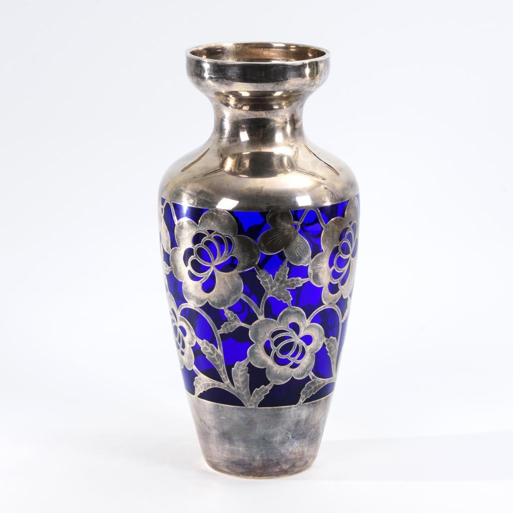 Kobaltblaues Glas, Silberauflage.H 37 cm.