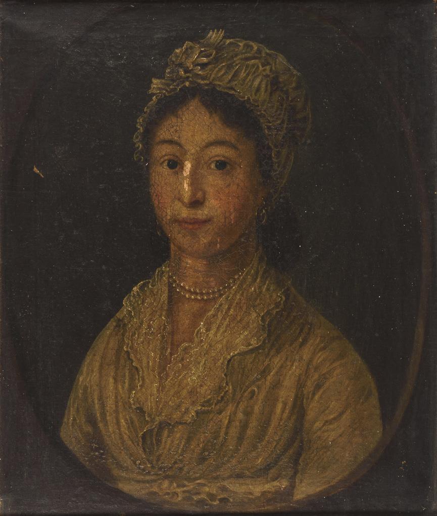 Portrait of a young woman in light dress with pearl necklace, with whom it probably concerns the Mrs. Anna Klara Gleim née Giller from Wolfhagen born on 11.12.1776. In need of restoration.