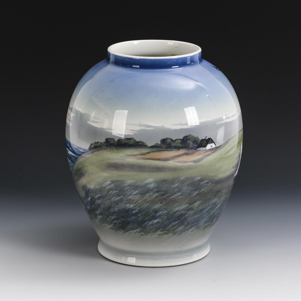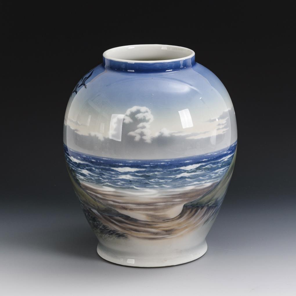 Baluster vase with a surrounding depiction of a coastal landscape with geese and wild geese. H 30 cm.