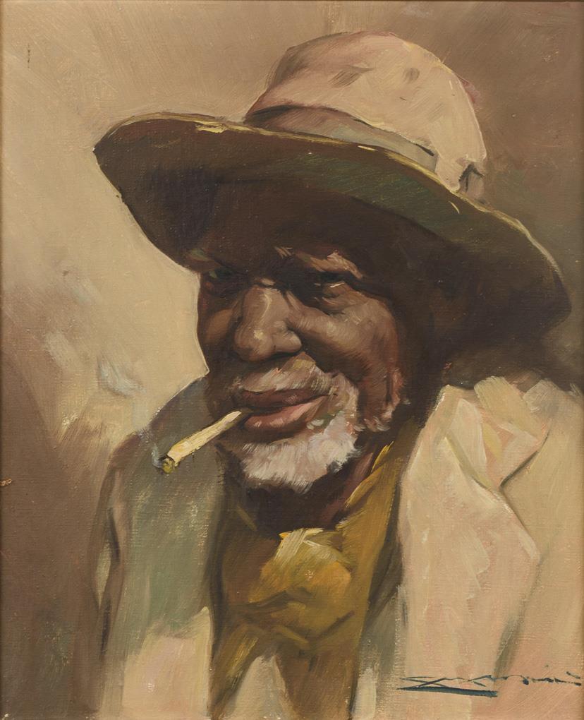 Character portrait of an African American man with cigarette. Minimal signs of age.