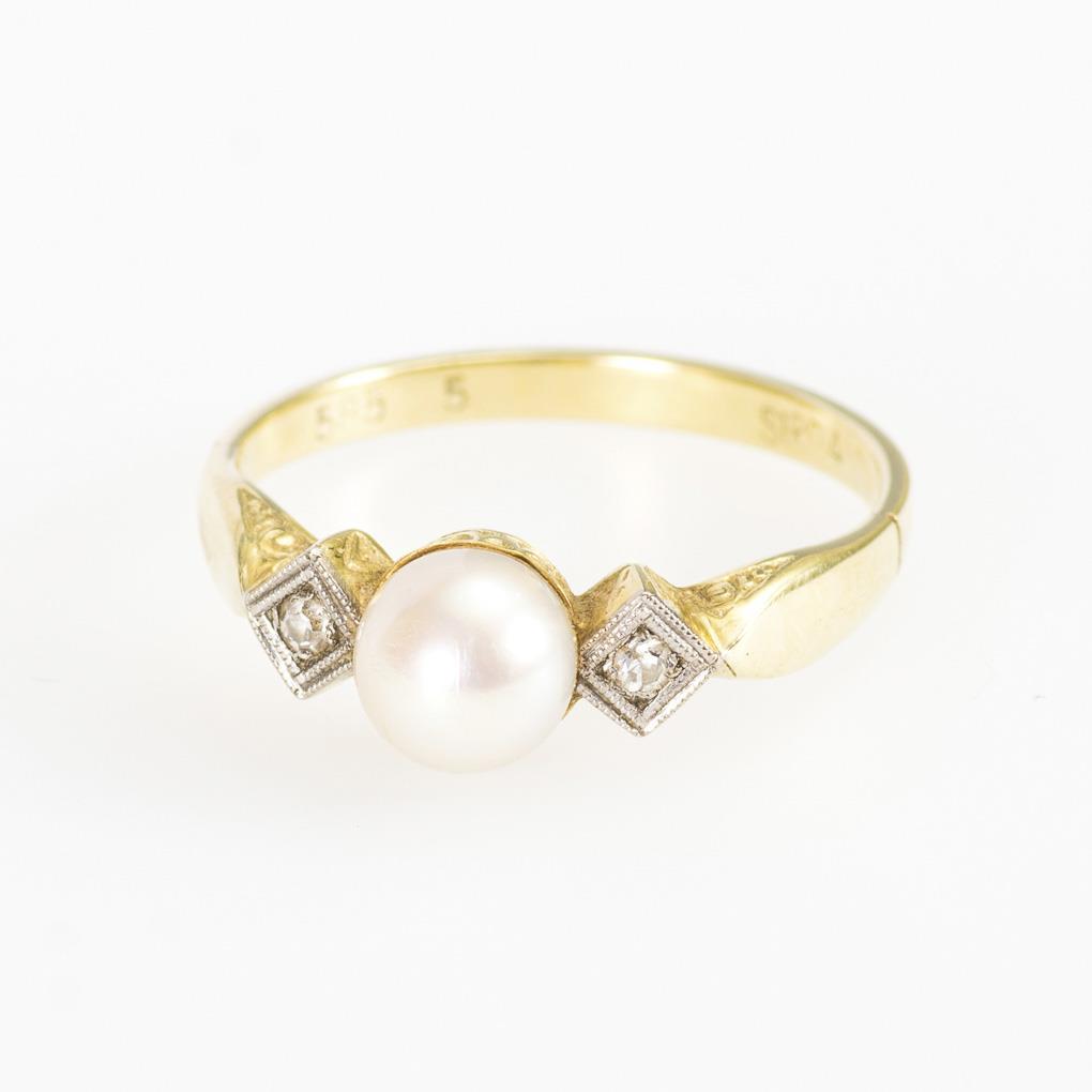 Art deco ring with cultured pearl and diamonds.