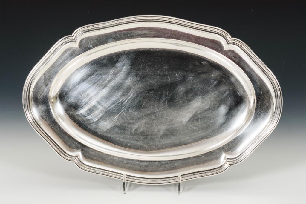 Fleischplatte mit Augsburger Fadenrand. Kratzer und Dellen.