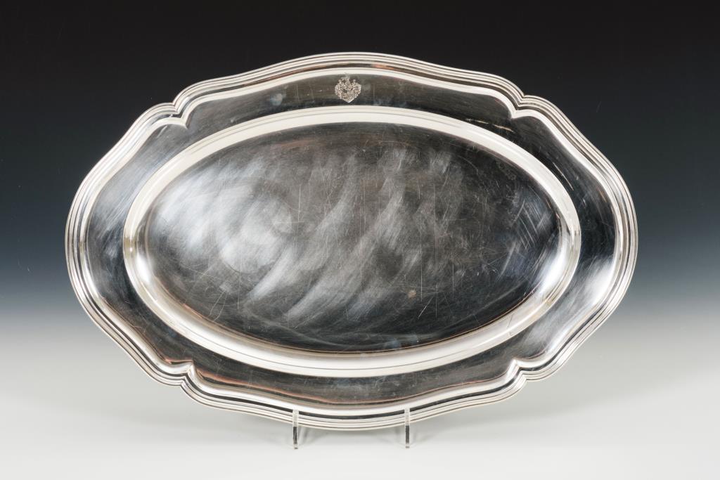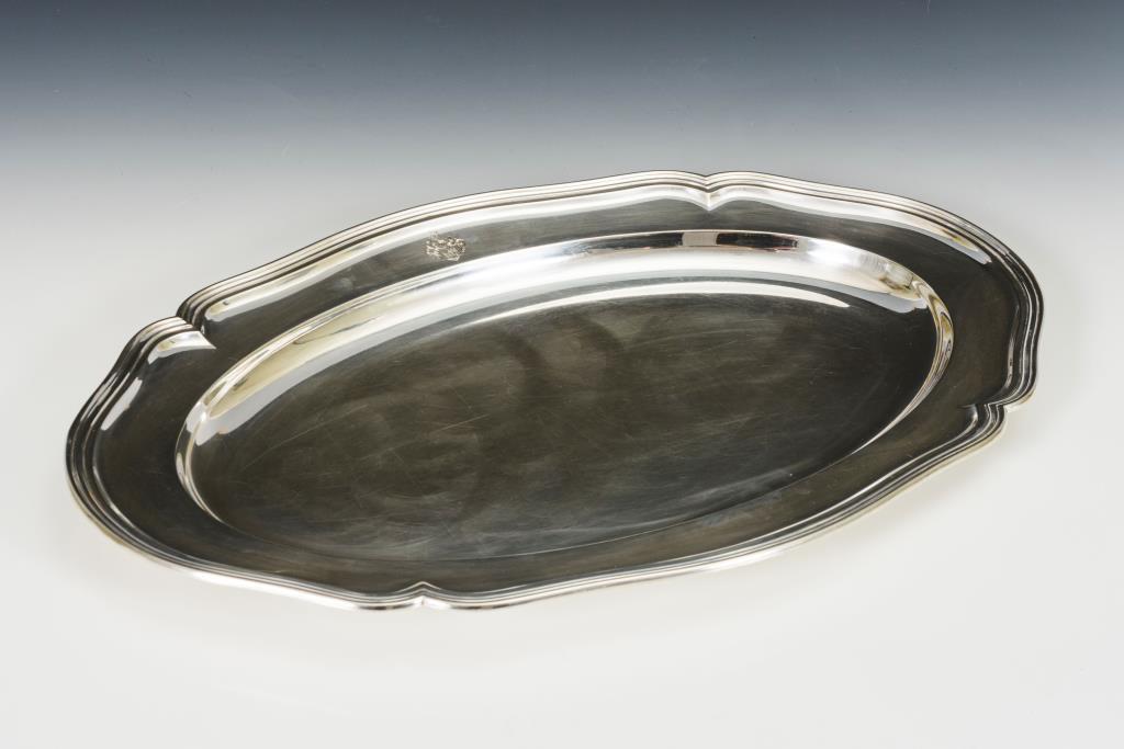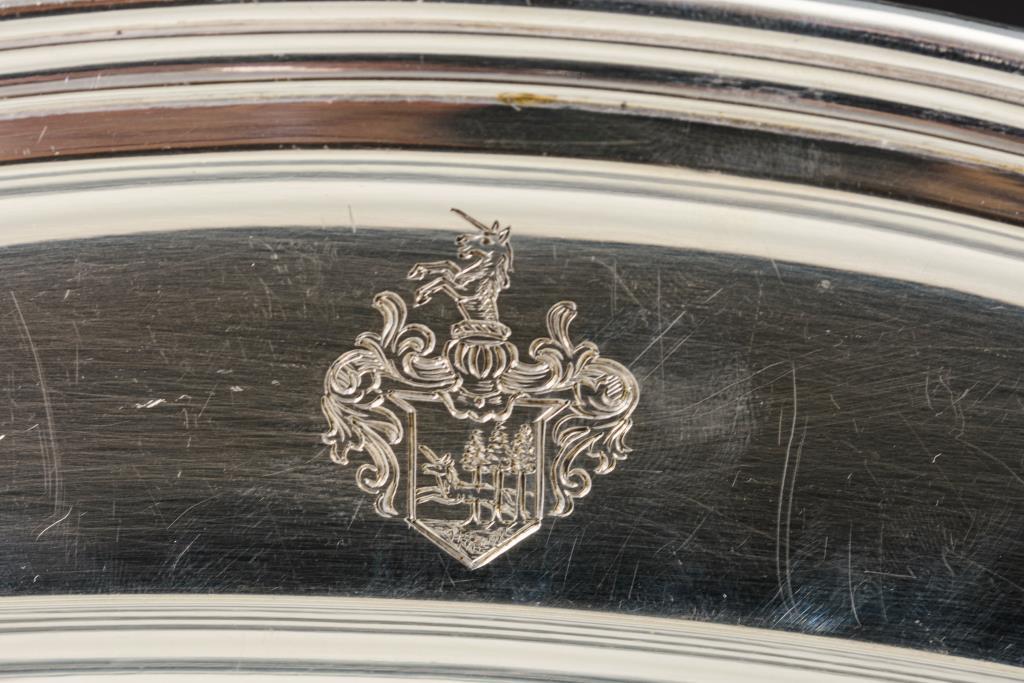 Große ovale Silberplatte mit Wappengravur