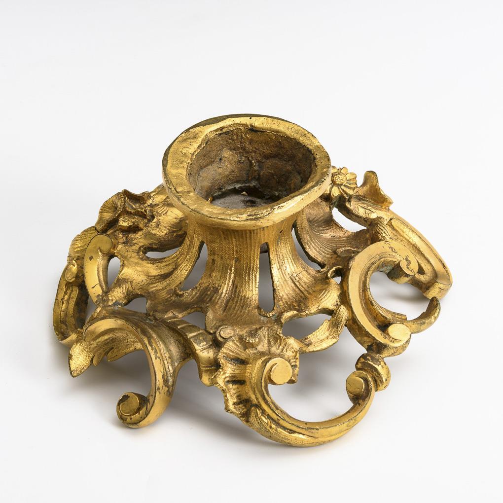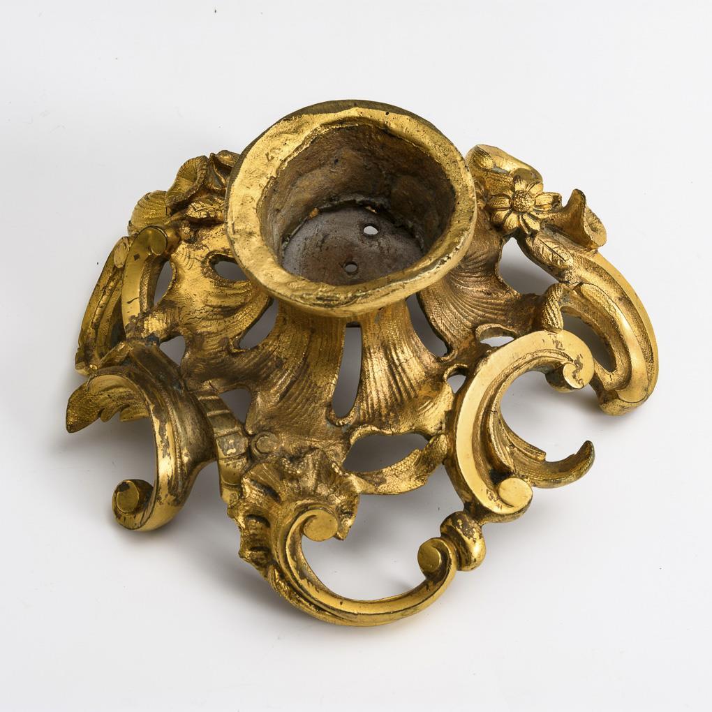In baroque style à-jour cast base with rocailles and flowers. Minimal hairline cracks, gilding partly rubbed.