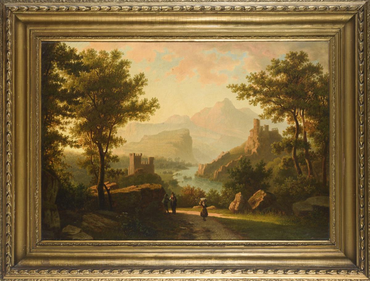 Indistinctly signed: Mountain Landscape with Ruins and Staffage