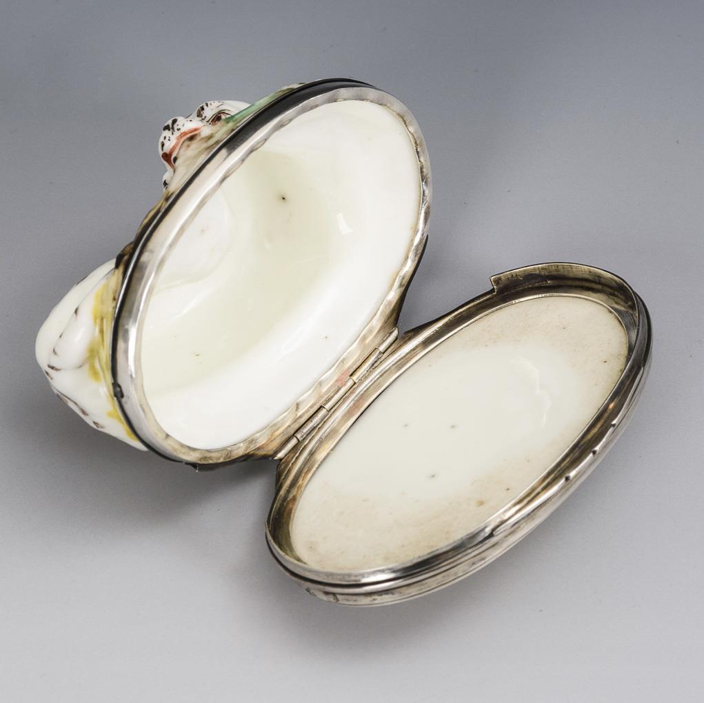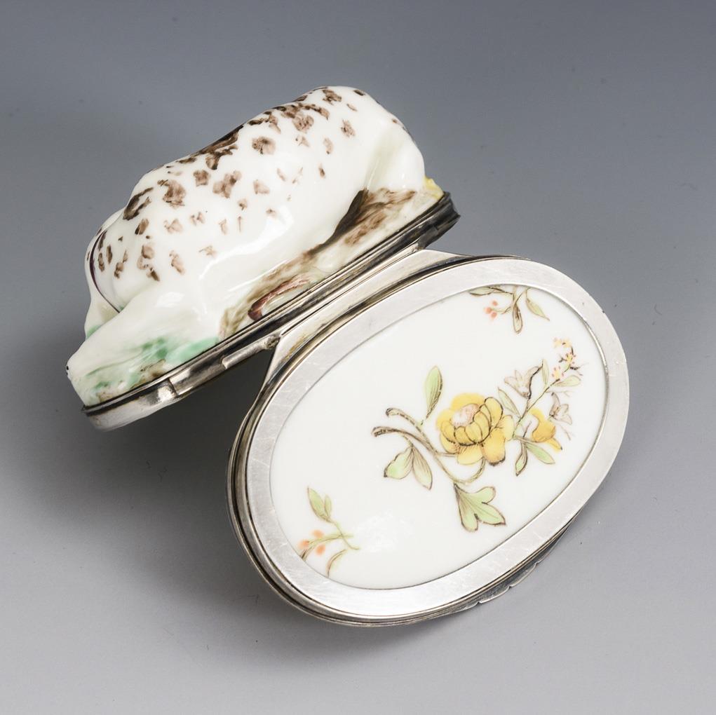 Polychrome painted, silver mount France (minerva head fineness 800/master's mark "J [Vogel] ..." hallmarked, from 1857). 4 x 7.5 x 5.5 cm.