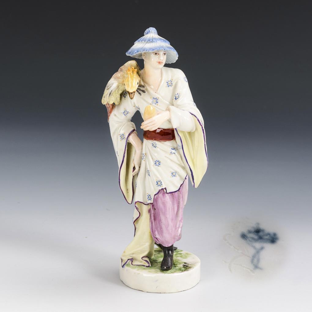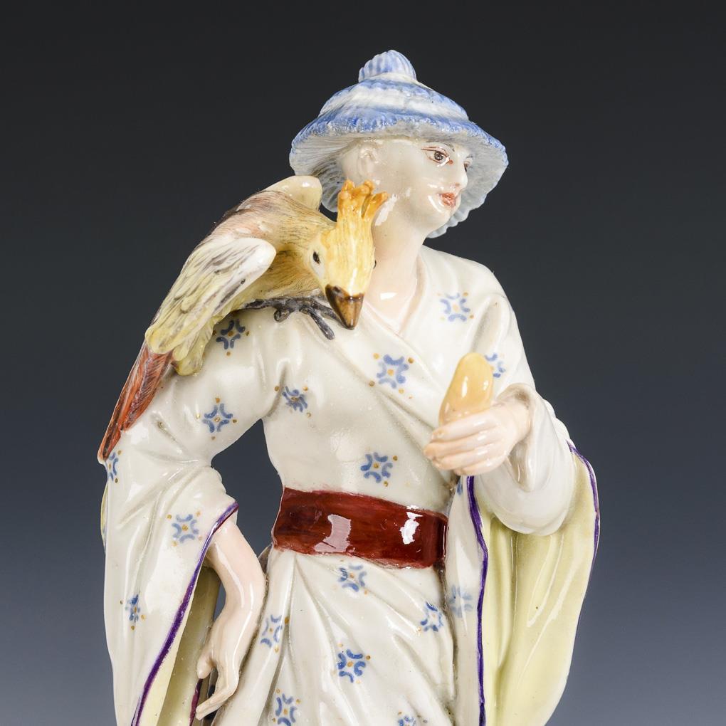 Standing Chinese woman, carrying an exotic bird on her arm. Restored.