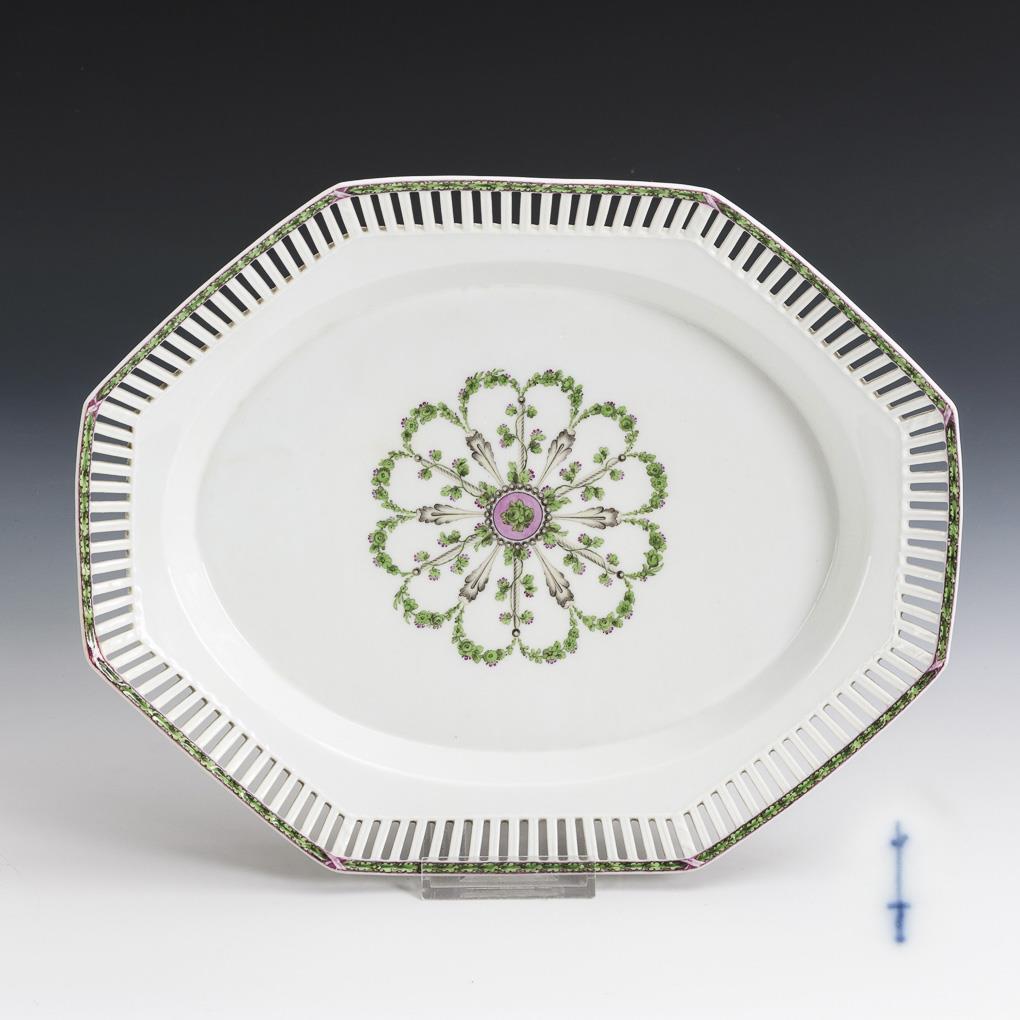 "Conical" form. Octagonal top with oak leaf border and a rosette in the mirror.