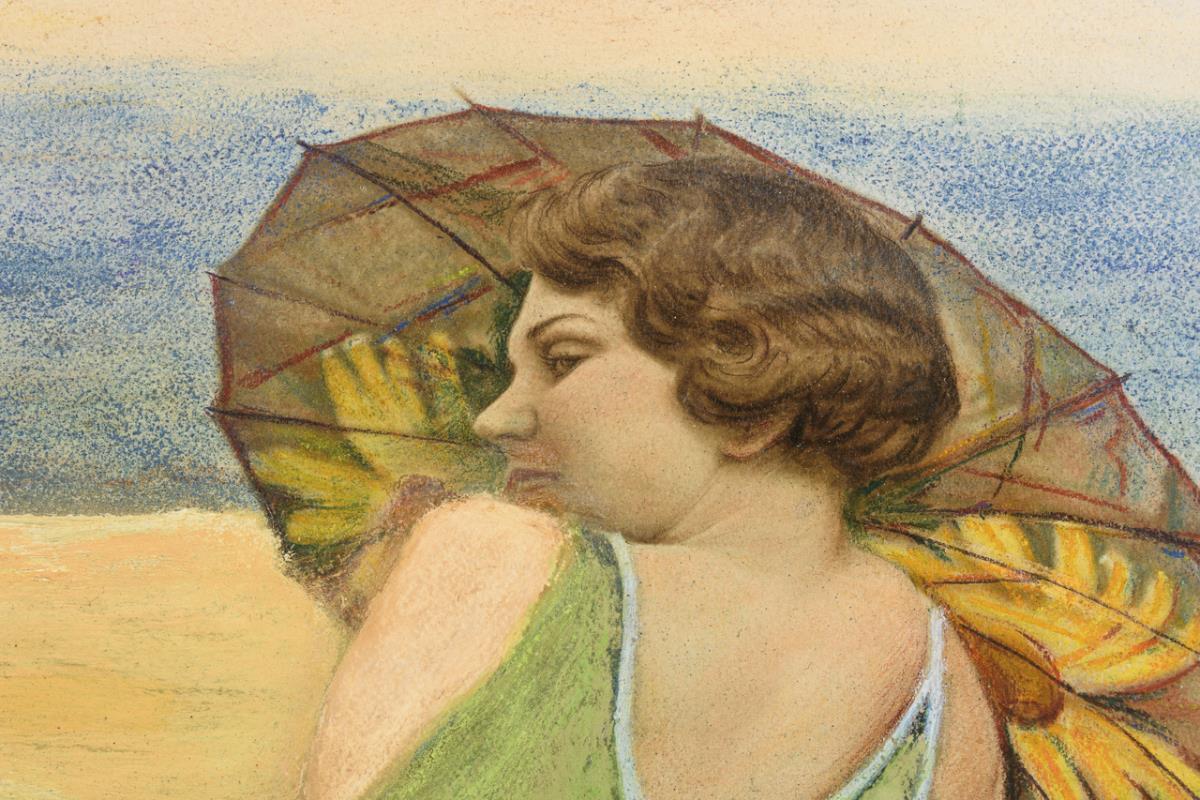 Pastel, mixed media. Signed lower right.