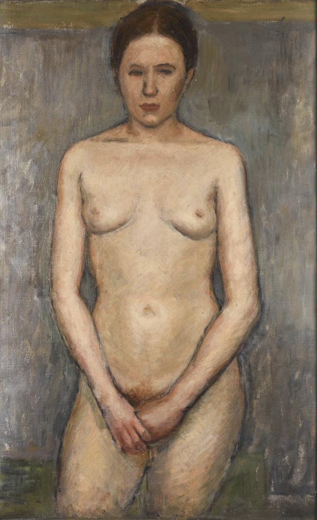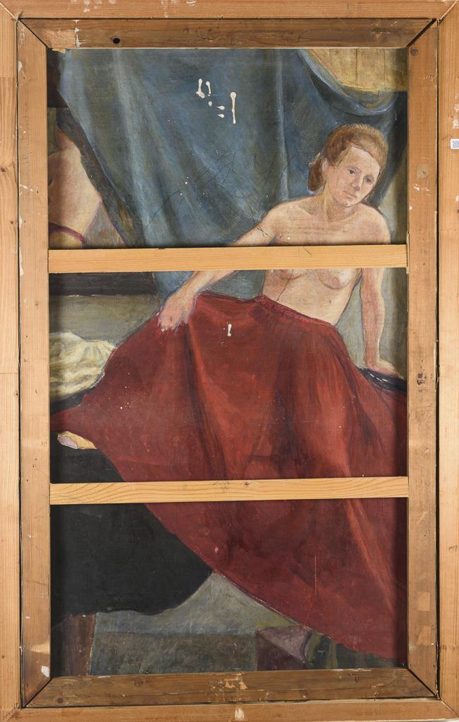 Oil/canvas. Unsigned, verso in red skirt seated semi-nude. 20th c.