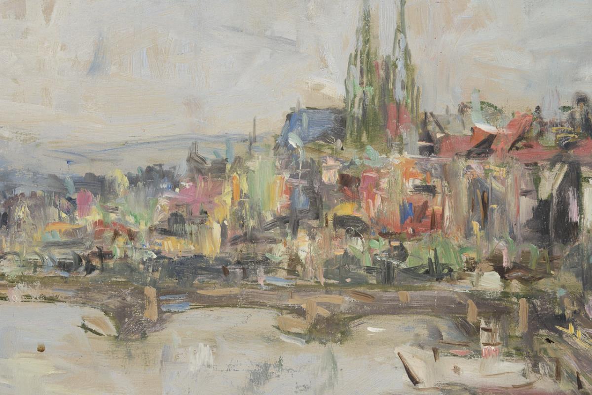 Oil/painted cardboard. Verso indistinctly signed/titled. Verso dated: 1957.