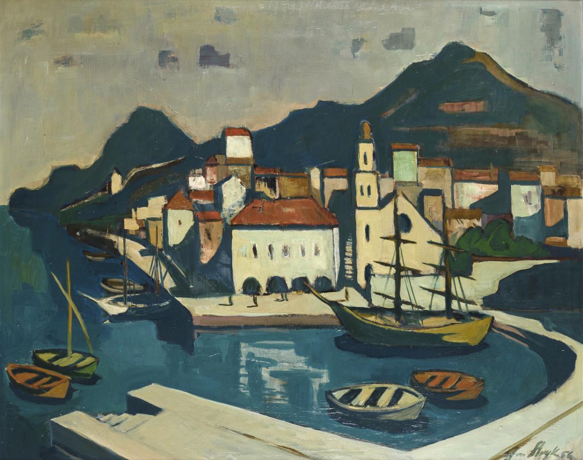Oil/painting cardboard. Signed lower right, inscribed/titled on verso. Dated: 1954.