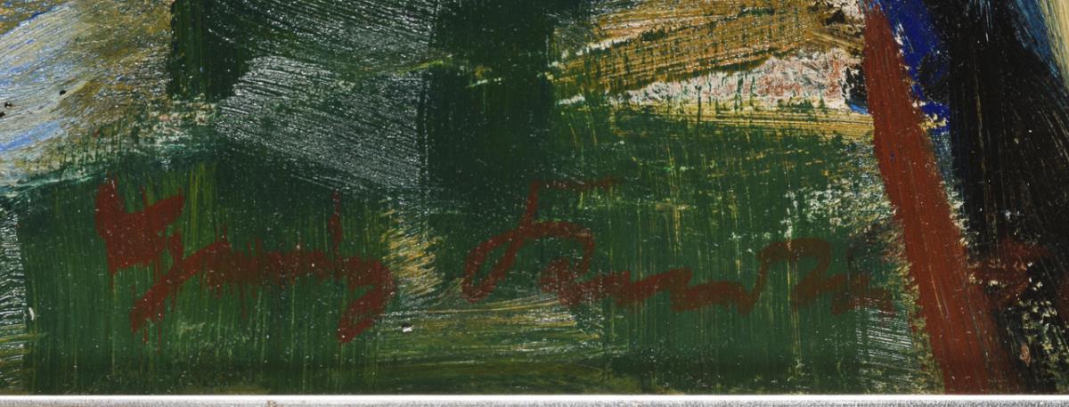 Oil/painting cardboard. Signed lower right. Dated: (19)50.