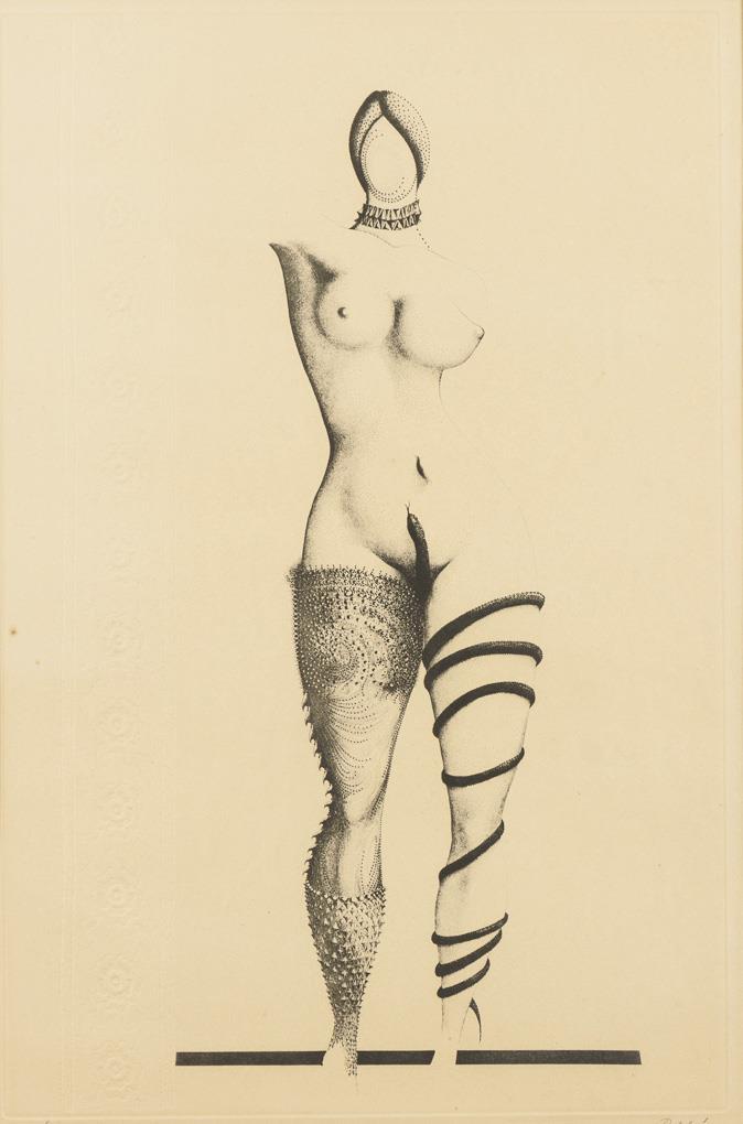 Surrealistic female nude with snake