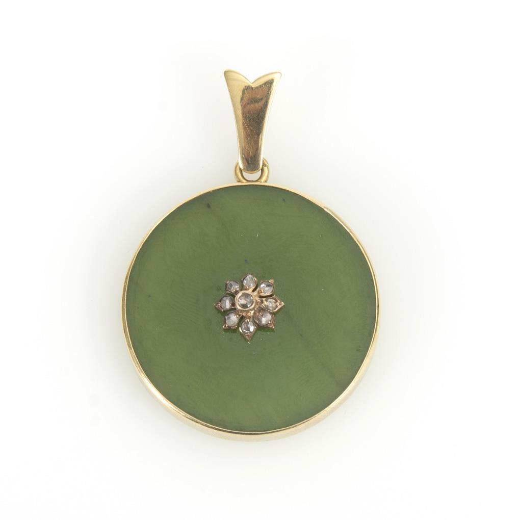 Tested yellow gold 585. Ø 3 cm. 7,6 g.