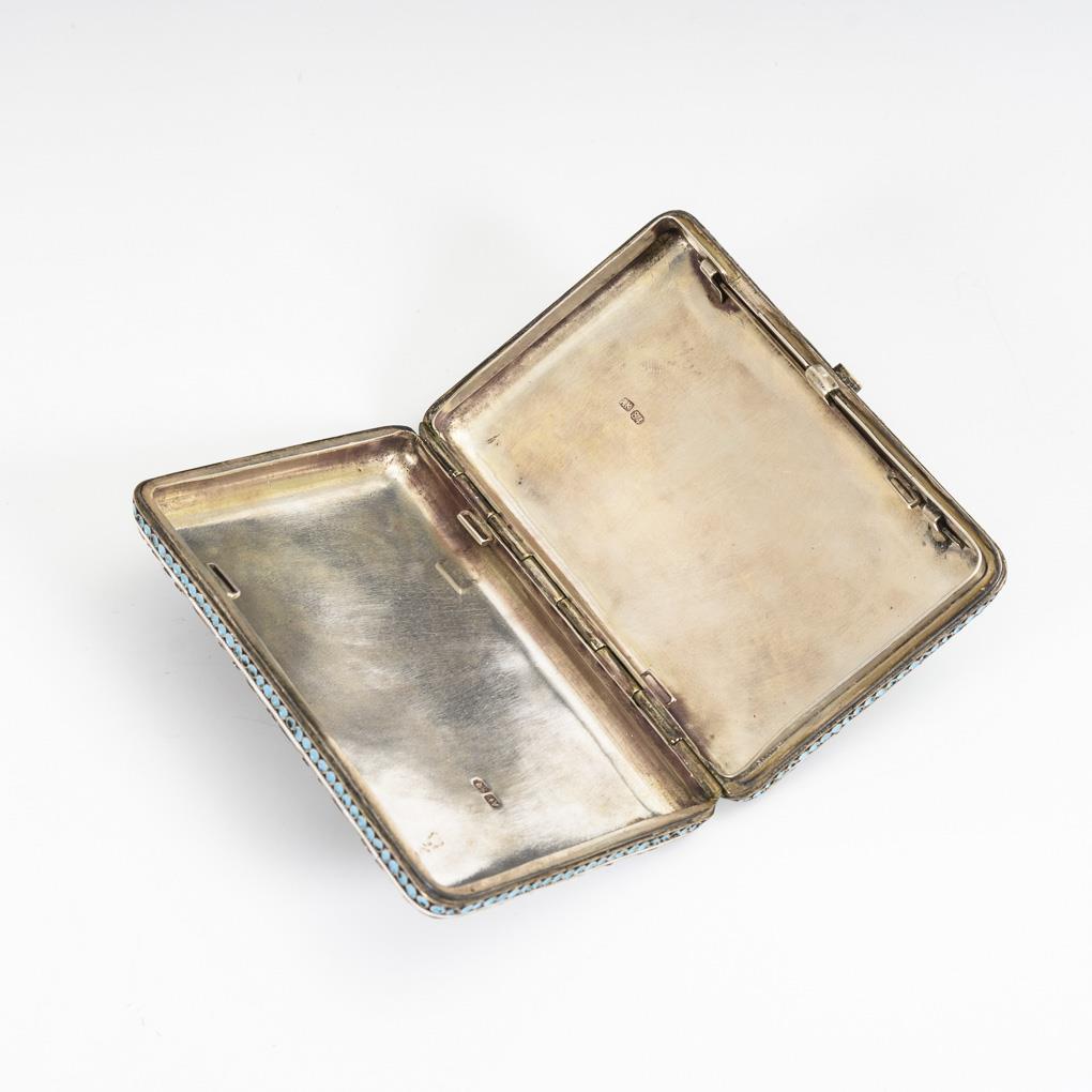 Richly decorated cigarette case. Few, tiny defects in enamel, clasp jams.