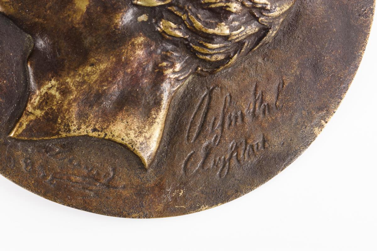 Bronze patinated. Inscribed with indistinct date "1834", titled with addition "Architect". Ø 17.5 cm.