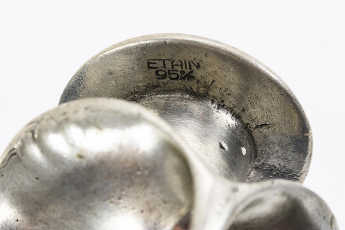 Discreet vegetal relief on the round base and on the drip tray with 3 struts. Few signs of age/use.