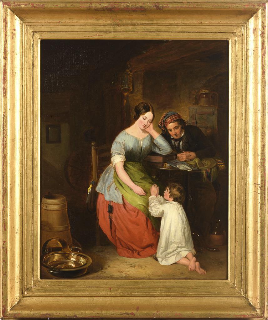 The pleading child at the feet of the mother at the table with the father beside. Minimal traces of age.