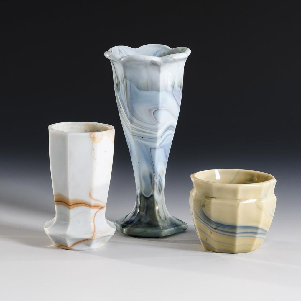 3 lithyaline glass vases.