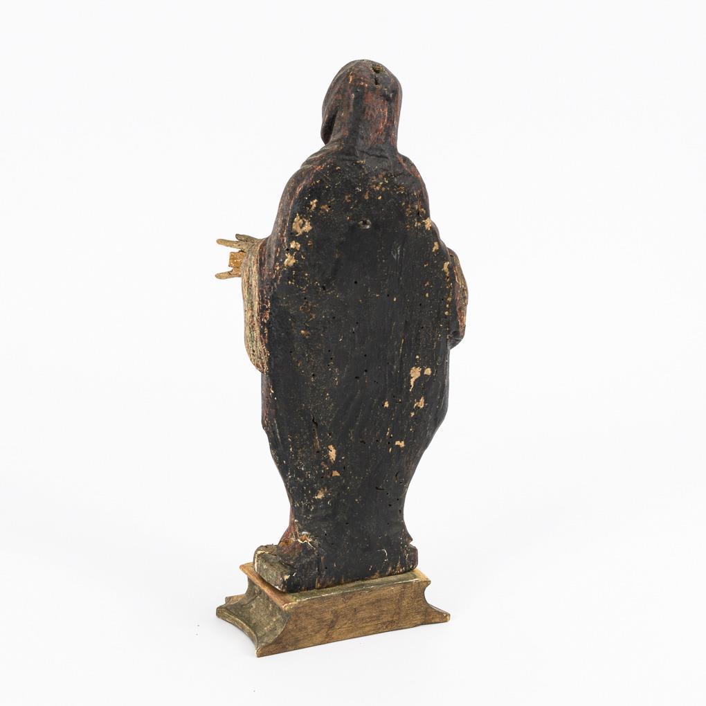 Standing Mother of God with outstretched arms; probably Maria gravida. Some fingers missing resp. glued, setting passed over, base completed.