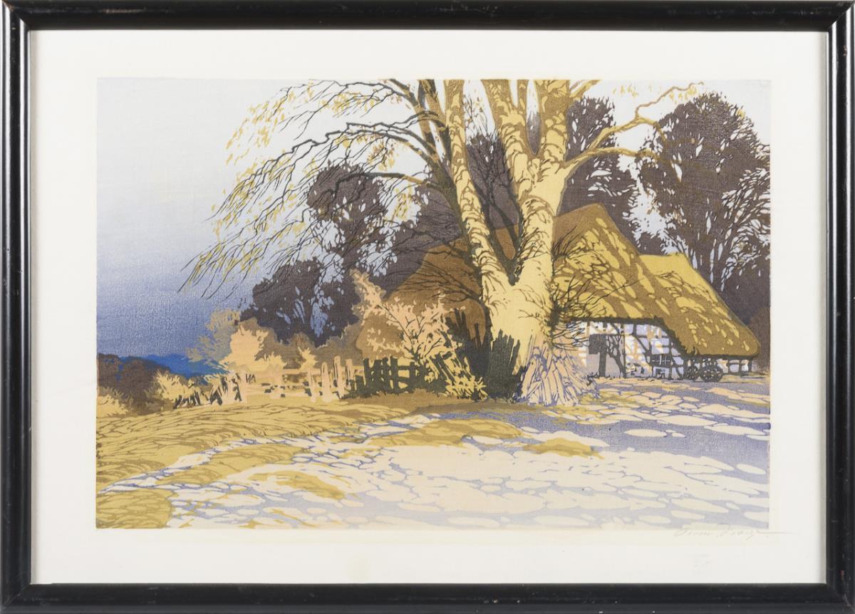 Color woodcut. Pencil signature.